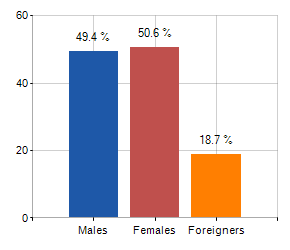 and related population density, population per gender and number of households, average age and incidence of foreigners