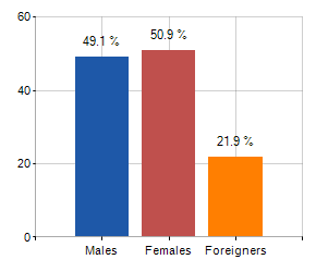 Males, females and foreigners incidence