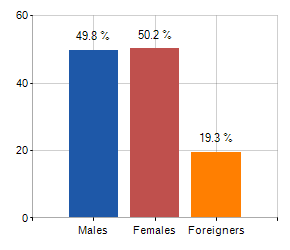 and related population density, population per gender and number of households, average age and incidence of foreigners