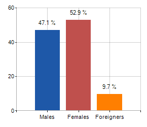 Demographic balance, population and familiy trends, age classes and average age, civil status and foreigners