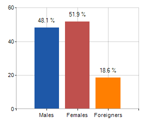 and related population density, population per gender and number of households, average age and incidence of foreigners