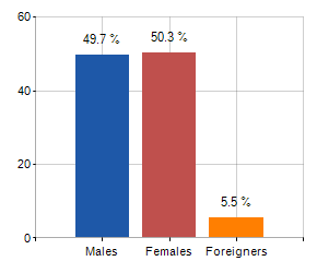 and related population density, population per gender and number of households, average age and incidence of foreigners
