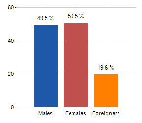 and related population density, population per gender and number of households, average age and incidence of foreigners