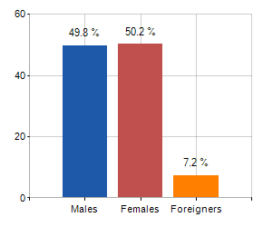 Males, females and foreigners incidence (year 2024)