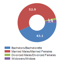 Resident families and related trend, the average number of members of the family and its related trend, civil status: bachleors/Bachelorette, married, divorced and widows / widowers in