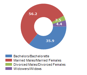 Resident families and related trend, the average number of members of the family and its related trend, civil status: bachleors/Bachelorette, married, divorced and widows / widowers in