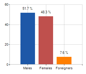 and related population density, population per gender and number of households, average age and incidence of foreigners