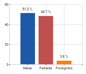 and related population density, population per gender and number of households, average age and incidence of foreigners
