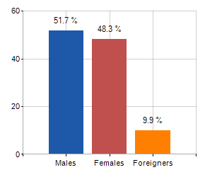 Males, females and foreigners incidence