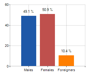 and related population density, population per gender and number of households, average age and incidence of foreigners