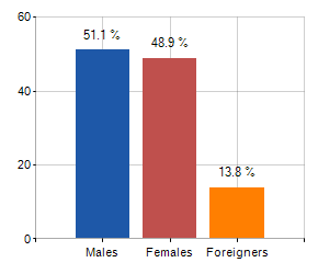 and related population density, population per gender and number of households, average age and incidence of foreigners