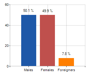 and related population density, population per gender and number of households, average age and incidence of foreigners