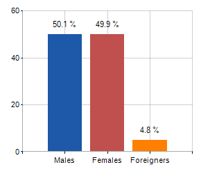 and related population density, population per gender and number of households, average age and incidence of foreigners