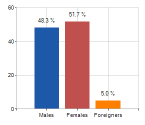Males, females and foreigners incidence