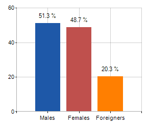 Males, females and foreigners incidence