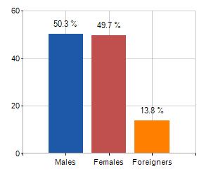and related population density, population per gender and number of households, average age and incidence of foreigners