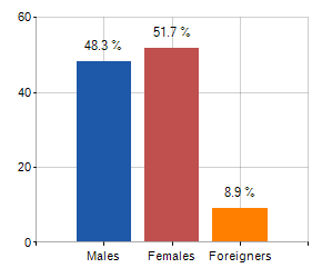 and related population density, population per gender and number of households, average age and incidence of foreigners
