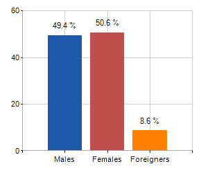 and related population density, population per gender and number of households, average age and incidence of foreigners