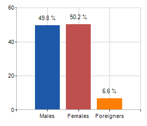 Males, females and foreigners incidence (year 2019)