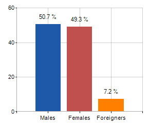 Males, females and foreigners incidence (year 2019)
