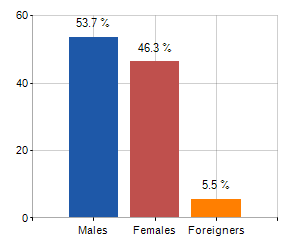 Territorial extension of Municipality of OSEN and related population density, population per gender and number of households, average age and incidence of foreigners