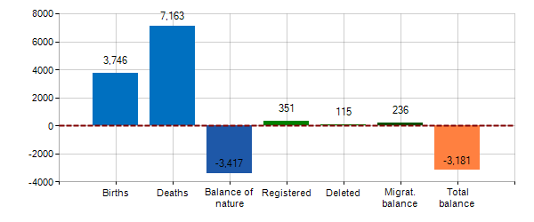 • Growth rate[7]: -5.7‰ ( 31° place among 42 provinces)