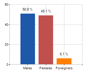 Males, females and foreigners incidence