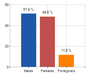 and related population density, population per gender and number of households, average age and incidence of foreigners