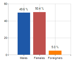 and related population density, population per gender and number of households, average age and incidence of foreigners