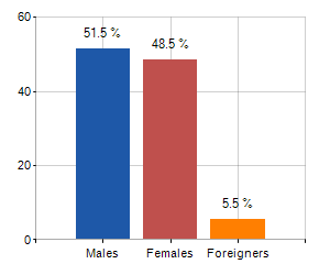 Males, females and foreigners incidence