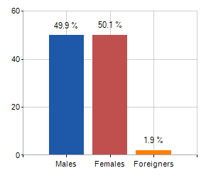 and related population density, population per gender and number of households, average age and incidence of foreigners