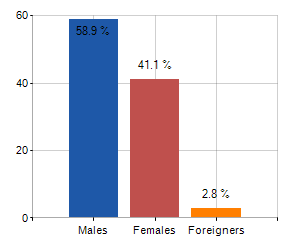 Males, females and foreigners incidence