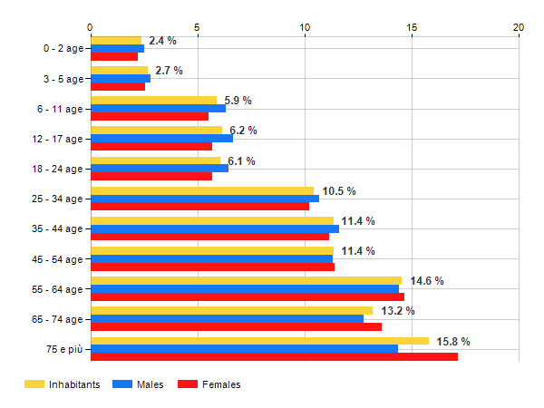 Age classes per gender and related impact, average age and old-age index in