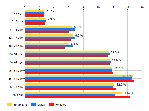 Age classes per gender and related impact, average age and old-age index in