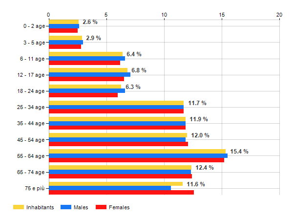 Age classes per gender and related impact, average age and old-age index in