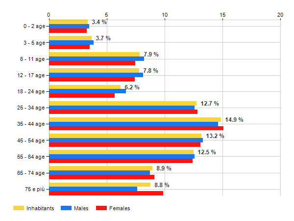 Age classes per gender and related impact, average age and old-age index in