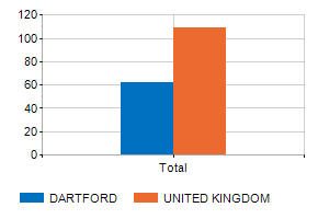 Age classes per gender and related impact, average age and old-age index in Municipality of DARTFORD