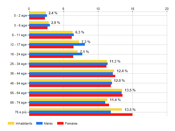 Age classes per gender and related impact, average age and old-age index in