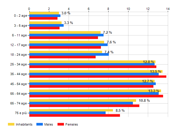 Age classes per gender and related impact, average age and old-age index in