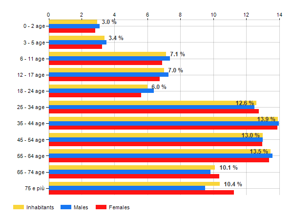 Age classes per gender and related impact, average age and old-age index in
