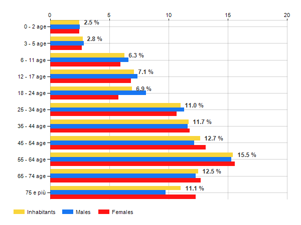 Age classes per gender and related impact, average age and old-age index in