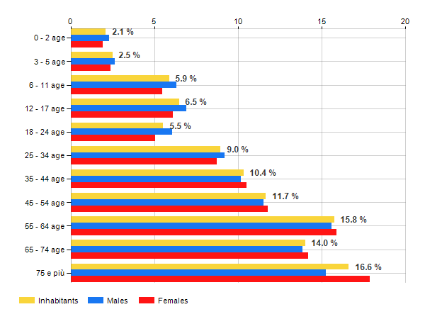 Age classes per gender and related impact, average age and old-age index in