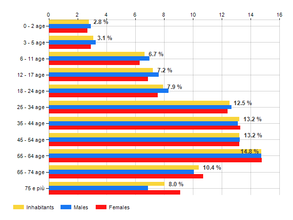 Age classes per gender and related impact, average age and old-age index in
