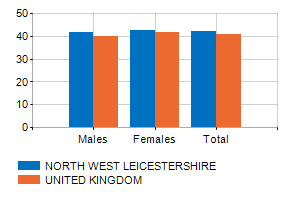 Age classes per gender and related impact, average age and old-age index in Municipality of NORTH WEST LEICESTERSHIRE