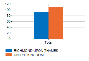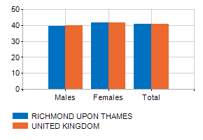 Age classes per gender and related impact, average age and old-age index in Municipality of RICHMOND UPON THAMES