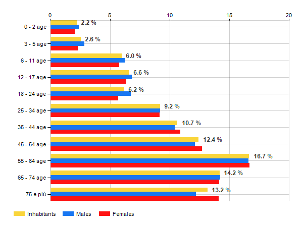 Age classes per gender and related impact, average age and old-age index in