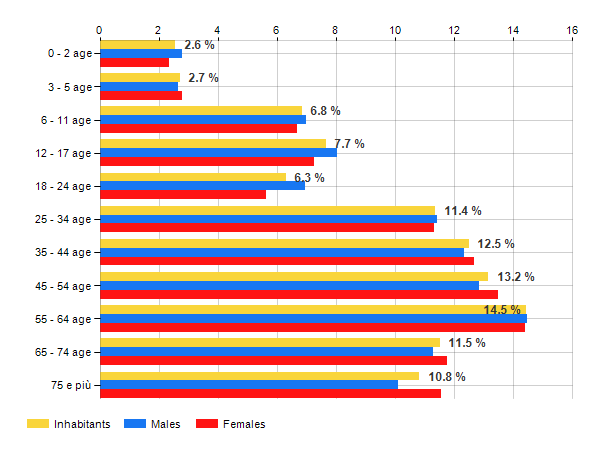 Age classes per gender and related impact, average age and old-age index in