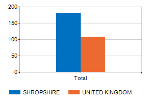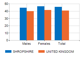 Age classes per gender and related impact, average age and old-age index in Municipality of SHROPSHIRE