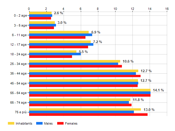 Age classes per gender and related impact, average age and old-age index in