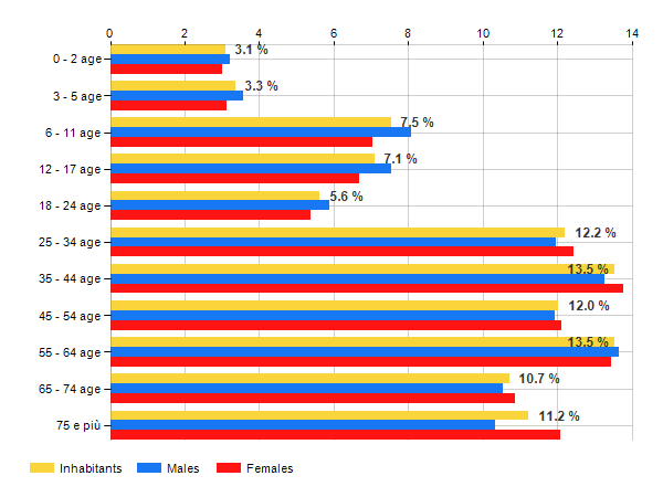 Age classes per gender and related impact, average age and old-age index in